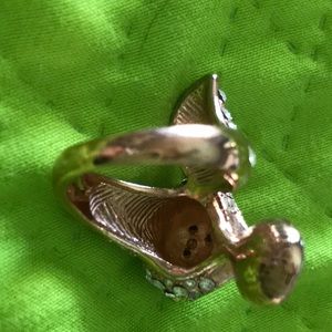 Purchased at Kohls looks like rose gold and stones on head and tail with orange 🍊 or pink can’t tell gently worn. Costume Jewelery