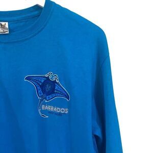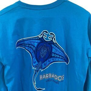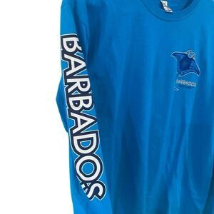 Stand out in this Fox Barbados long sleeve graphic tee, featuring a bold jellyfish design in oceanic blues. Size medium, unisex fit. The soft cotton blend and relaxed cut make it a perfect piece for casual days, beach vibes, or layering up in cooler weather. Lightly worn, in great condition.