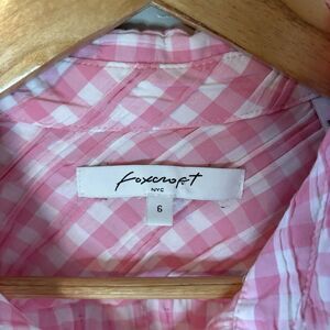 FoxCroft NYC Pink Plaid Button Up Top Pleated Textured Blouse Womens Sz 6
