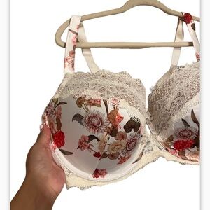 Key Features Include: - Plunging neckline - Thick adjustable shoulder straps - Full coverage cups - Underwire support to bust - Satin bow feature to front - Combination lace and silk-feel cups - All-over floral print - Subtle boning to wings - Triple hook and eye closure to reverse