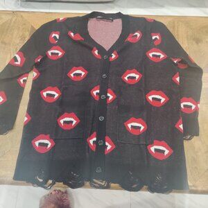 Oversized, unisex fit with a full button up front. Made out of a soft cotton knit.