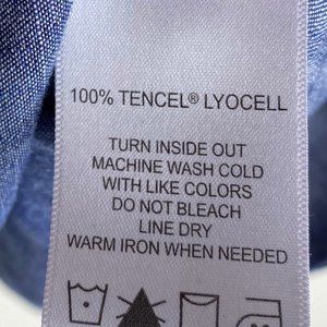 Foxcroft 12 Large Shirt Top Tunic Chambray Jean Denim Dark Wash Bell Slv.