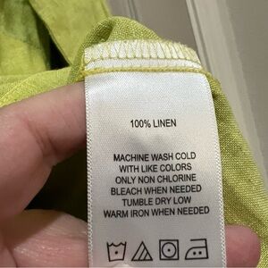 Foxcroft 14W Relaxed Chartreuse 100% Linen Long Sleeve Button Down Shirt