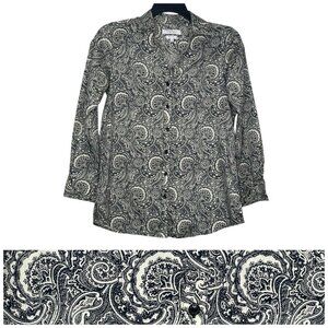 Foxcroft Appleseeds Shirt Size 8 Paisley Button Closure Wrinkle Free Cotton