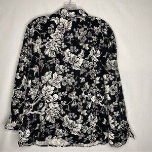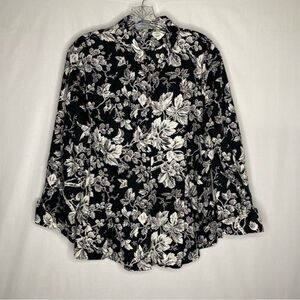 Foxcroft Black and White Leaves Button Down Shirt size 18