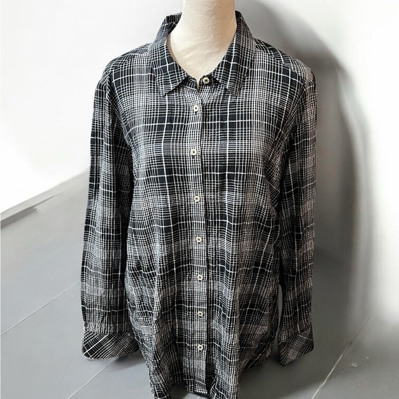 Foxcroft Black and White Plaid Button Down Shirt