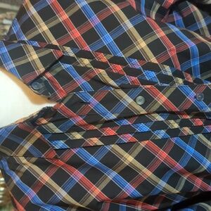 Stylish shirt featuring a vibrant plaid pattern. Perfect for casual or semi-formal occasions.