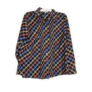 Foxcroft Blouse Wrinkle Free Shaped Fit Multi Plaid Button Front Top Sz 16