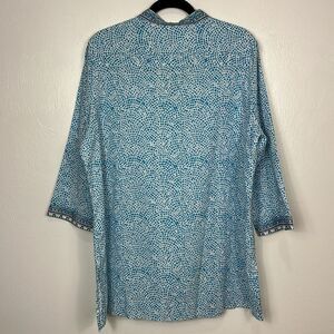 Foxcroft Border Trim Cotton Wrinkle Free Tunic Top In Lagoon Multi Size 18