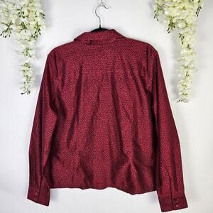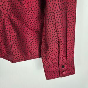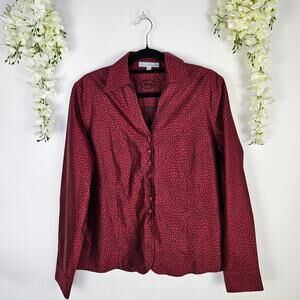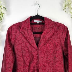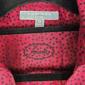Foxcroft Button Down Shirt Red Black Polka Dot Fitted Non-Iron Career Top Sze 16