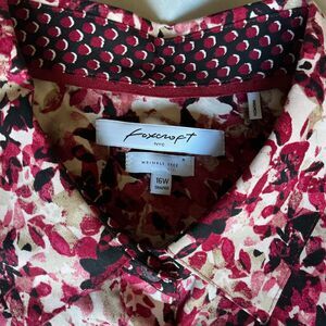 Foxcroft Button Shirt Womens 16W Wrinkle Free 100% Cotton Floral Long Sleeves