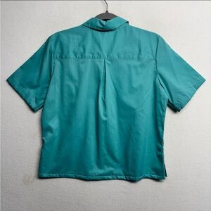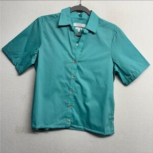 Foxcroft For Appleseeds Button Down Shirt Short Sleeve Blue Green 6 Short Sleeve