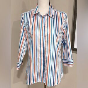 Foxcroft For Appleseed’s Womens Button Down Wrinkle free Striped Shirt