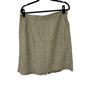 Foxcroft Heather Green 100% Linen Unlined Skirt Pockets Sz L women’s