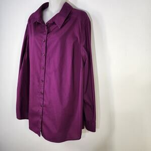 Foxcroft Lane Bryant Shirt Women Size 22 Wrinkle Free Stretch Button Long Sleeve