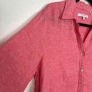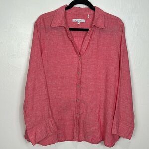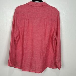 Foxcroft Linen 7/8 Length Sleeve Button Down Shirt In Pink Size XL