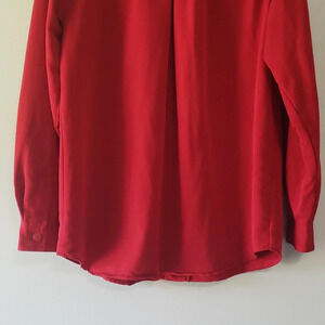 Foxcroft Long Sleeve Button Up Blouse Top Women's 6 Deep Red Quiet Luxury Classy