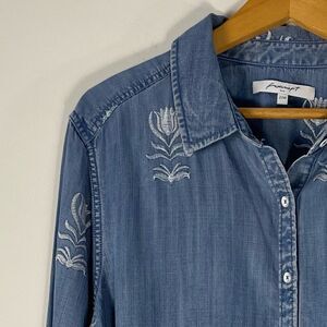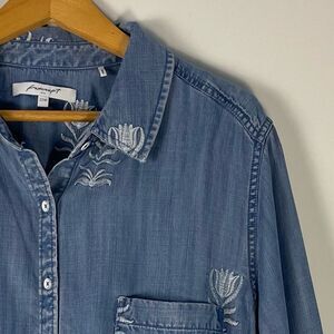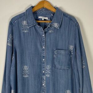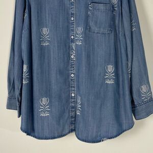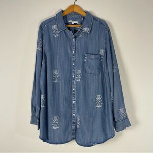 Foxcroft Long Sleeve Embroidered Button Down Shirt Top size 22W Tencel