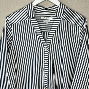Foxcroft NYC Heritage Non Iron Grey and White Striped Button Down Shirt Size 12