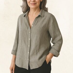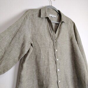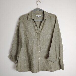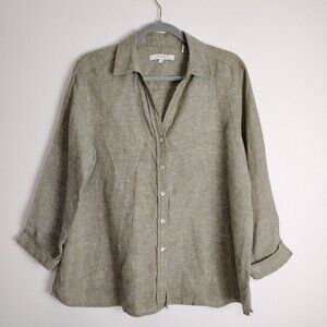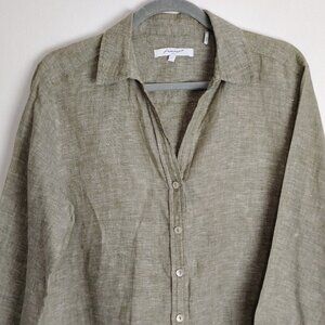 Foxcroft NYC Linen Long Sleeve Button Down Top in Olive - Large
