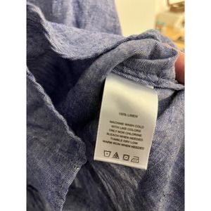 Foxcroft NYC Women’s Linen Button Down large Blue Split Neck Side Slit Blouse