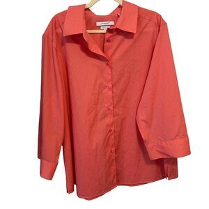 Foxcroft NYC Womens Wrinkle-Free Button-Up Shirt Size 24W Coral