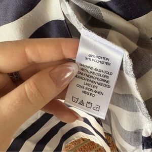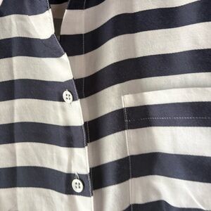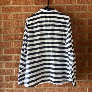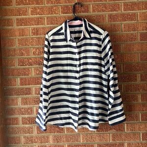 Foxcroft Navy Blue and White Striped Button Down Long Sleeve Size 10