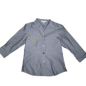 Foxcroft Non-Iron Fitted Women's Shirt Size 4 Gray 100% Cotton business casual