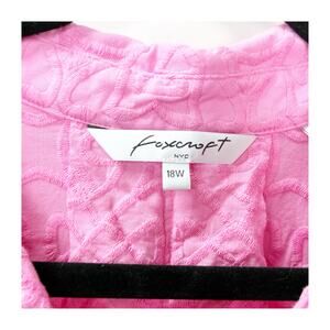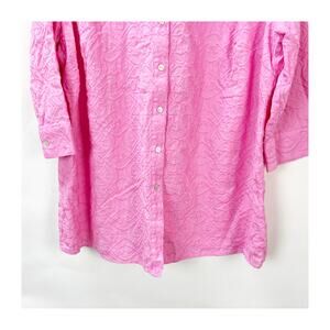 • Foxcroft NYC plus size blouse in size 18W with an all‑over raised textured pattern in vibrant pink; button‑front, classic collar design