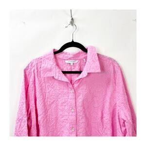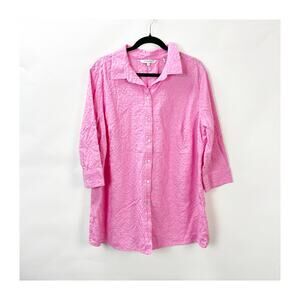 Foxcroft Plus 18W Women Pink Textured Button‑Front Blouse Lightweight