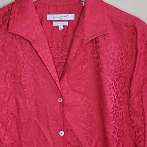 Foxcroft | Red Tonal Leopard Print Fitted Button Front Shirt Size 8
