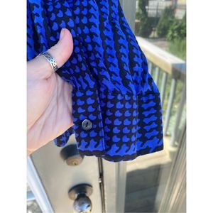 Foxcroft Shaped Fit Blue and Black Houndstooth Button-Up Blouse Sz 14, MSRP $94