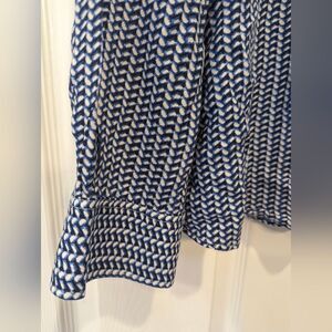 Foxcroft Shaped Fit Women's Size 14 White Button-Up Shirt Long Sleeve Rayon Top Blouse. Stylish blue and white button-up shirt with a classic collar. Soft material great condition Perfect for business casual, office or formal occasions.