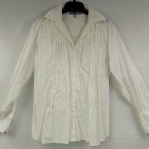 Foxcroft Shaped Stretch Ruched Button Front Collared Boho Style Blouse Size 8