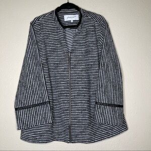 Foxcroft black white striped full zip bell sleeves jacket. Woman’s plus size 2X. Gently used, no flaws