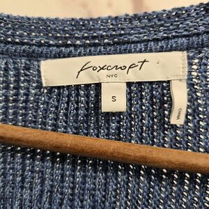 Foxcroft Sweater Womens Small Blue Cardigan Cotton Open Knit Ribbed