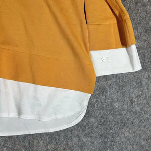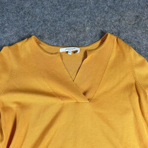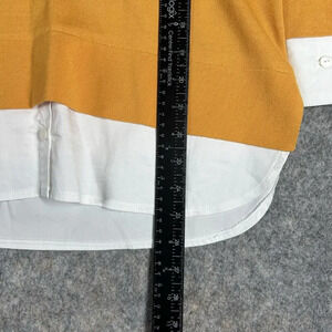 Foxcroft Sweater Womens Small Petite Comtrast Hem Mustard Yellow Career