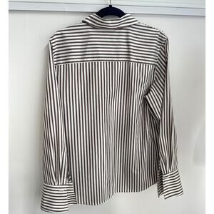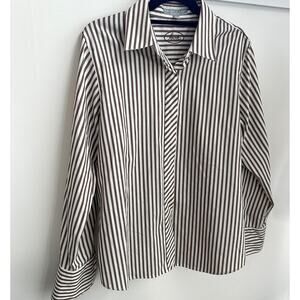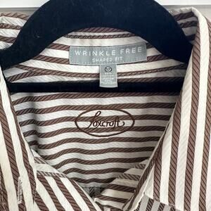 Foxcroft Brown White Stripe Shaped Fit Wrinkle Free Button Down Shirt Blouse Women's Size 12 / Large Pit to pit - 22" Length - 27" Sleeves measured under arm - 19.5" Excellent condition, no flaws