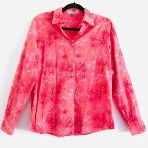 Foxcroft Top 8 Long Sleeve Button Down Floral Embroidery Pink Boho Nature Shaped