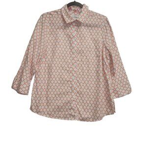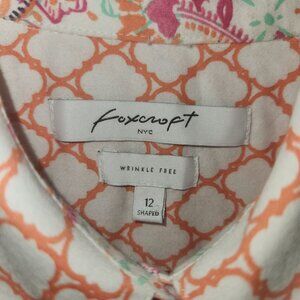 Foxcroft Womens 12 Wrinkle-Free Cotton Shirt With Orange Pattern 4022