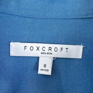 Foxcroft Womens 8 Blue Non Iron Fitted Button Up Shirt 3/4 Sleeve Blouse