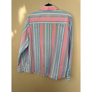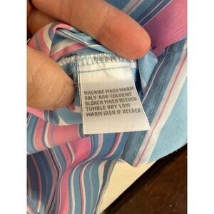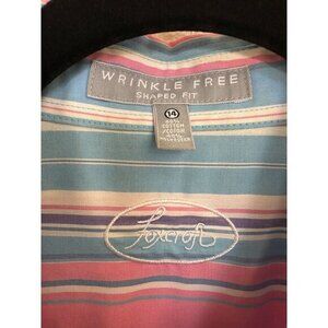 Foxcroft Womens Blue Pink Blouse 14 striped long sleeve button up collar cotton