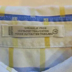Foxcroft Womens Collared Cotton Plaid Button Down Shirt Blue Green Size 14