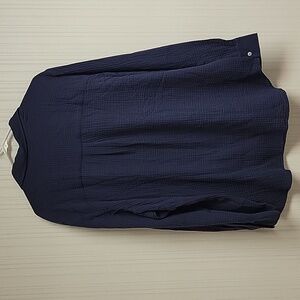 Women's soft 100% cotton waffle weave long sleeve navy boyfriend button down shirt. XL. 62" chest. oversized. New with tags.