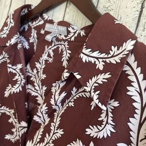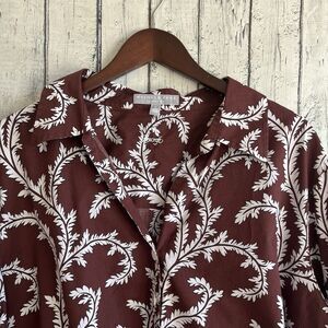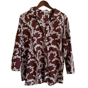 Foxcroft Womens Leaf Print Button Up Top Size 22W Office Collared Shaped Fit