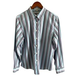 Foxcroft Women’s Non-Iron Button Down Shirt Shaped Fit Long Sleeve Striped Sz 12