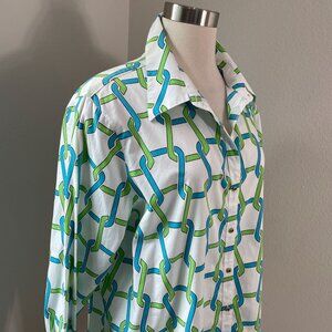 Foxcroft Womens Plus 18W Wrinkle Free Shaped Fit Button Up Shirt Chain Pattern