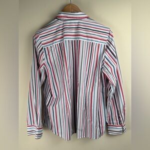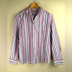 Foxcroft Women's Red White & Blue Striped Button Up Shirt Size 10 USA Patriotic