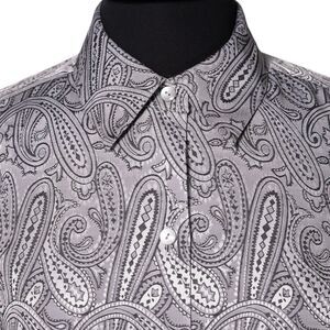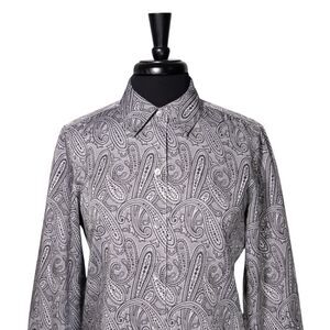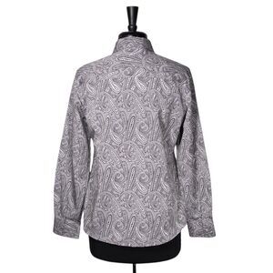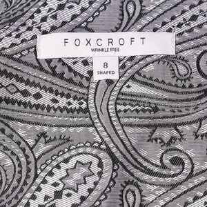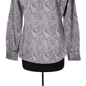 Foxcroft Women's Shirt Button Up Gray Silver Paisley Wrinkle Free Blouse Top 8