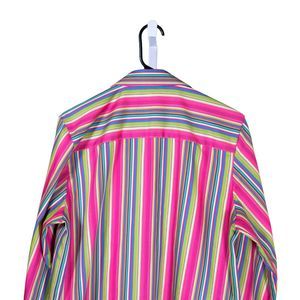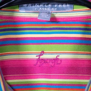 Foxcroft Women's Shirt Button Up Striped Wrinkle Free Colorful Blouse Top Size 8